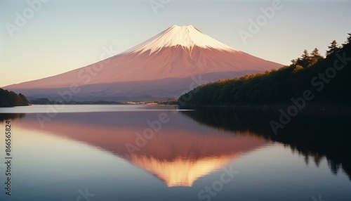fuji mountain view from relaxed lake, sunset view