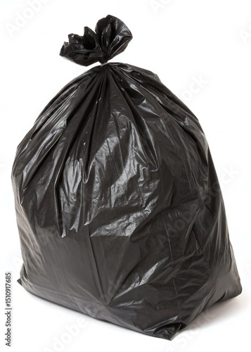 Full Black Plastic Trash Bag on white Background