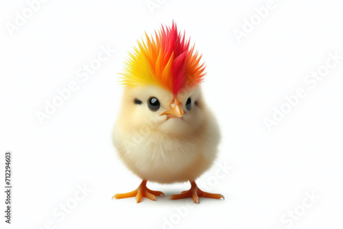 full body chicken with a color mohawk on his head on a white background. ai generative
