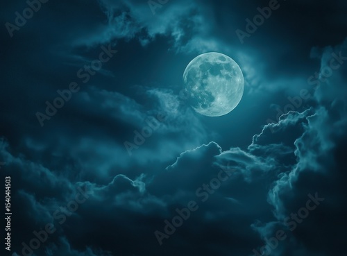 Full moon, dark clouds, night sky