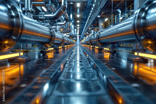 full of technical tubes and silos, minimalistic, clean, shades and lights