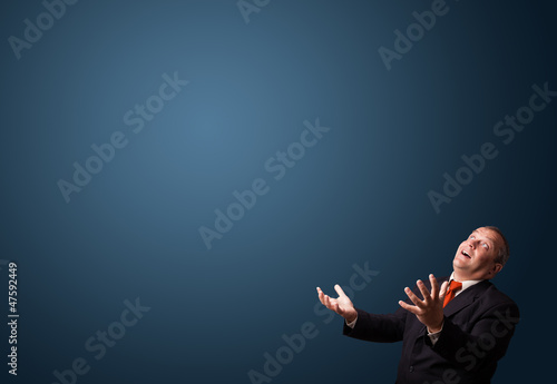 funny businessman gesturing with copy space