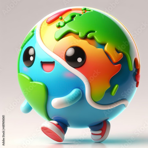 Funny cartoon of Earth globe. World Earth Day. AI generated