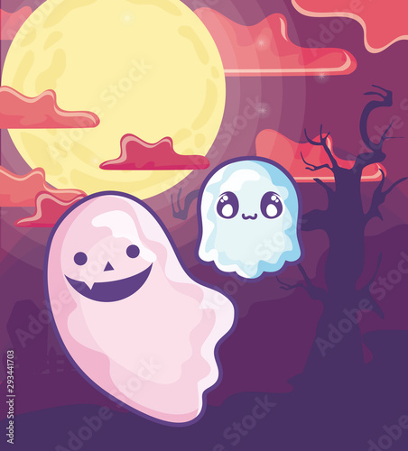 funny halloween ghosts on halloween scene