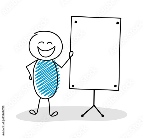 Funny hand drawn stickman with empty whiteboard. Vector