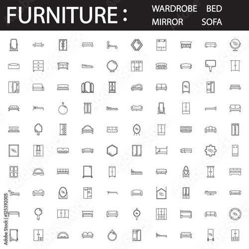 Furniture line icon set.