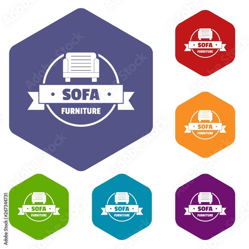 Furniture sofa icons vector colorful hexahedron set collection isolated on white