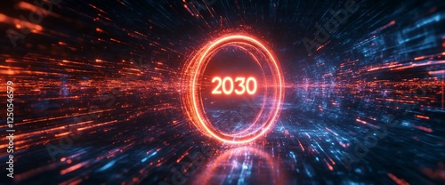 Futuristic 2030 neon ring in data stream.