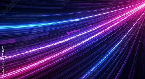 Futuristic abstract background with glowing neon light streaks in blue, purple, and pink. Dynamic forward motion effect, vibrant contrast, smooth gradient, and immersive depth.