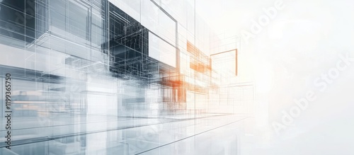 Futuristic architectural design concept with digital tools in a modern light gray and orange color scheme featuring empty space for text.