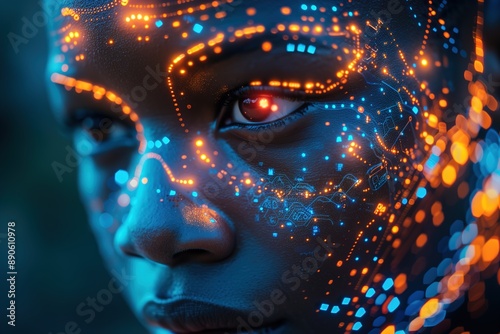 Futuristic Athlete's Face Illuminated With Bright Lights