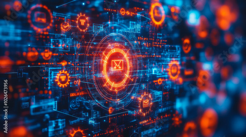Futuristic B2B Commerce and Technology Concept with Digital Marketing Icons and Supply Chain Network Visualization