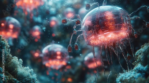 Futuristic Bioluminescent Jellyfish Swarm Underwater Digital Art