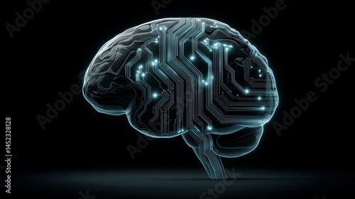 Futuristic Brain with Circuitry Design and Neon Glow Effect