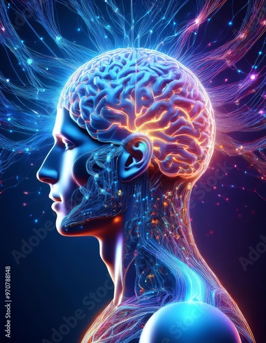 Futuristic Brain with Neon Neural Pathways