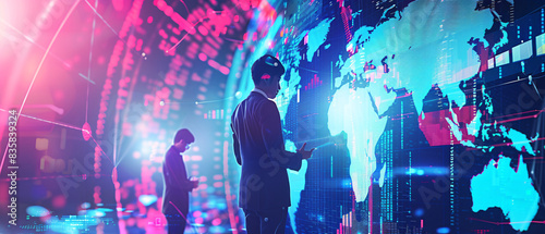 Futuristic business people using technology to analyze global markets