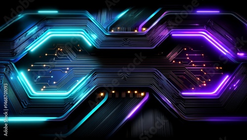 Futuristic Circuit Board with Glowing Neon Lines