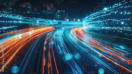 Futuristic City Light Trails with Dynamic Motion