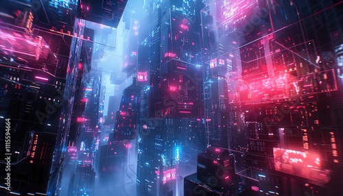 Futuristic Cityscape Neon Lights Glowing Towers