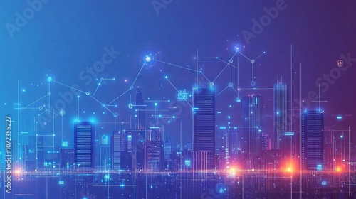 Futuristic Cityscape With Digital Network Connections