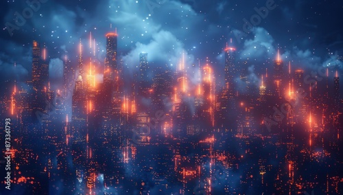 Futuristic Cityscape with Glowing Lights