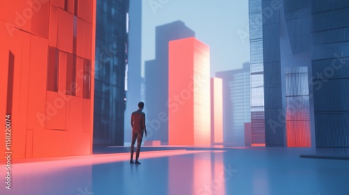 Futuristic cityscape with vibrant colors.