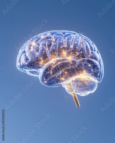 Futuristic Concept of Brain with Glowing Neural Connections Against Blue Sky Background