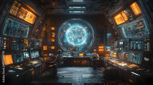 Futuristic Control Room 3D Illustration