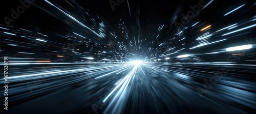 Futuristic Cyberpunk Light Trails Background: Neon Motion Blur Effect