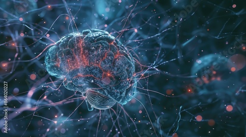 Futuristic Digital Brain with Neural Network Connections and Glowing Synapses in a High-Tech Virtual Environment