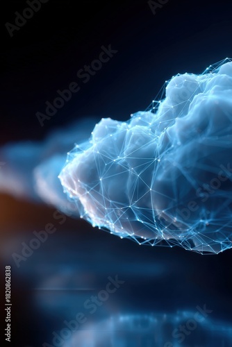 Futuristic digital cloud network with geometric connections and soft glowing lights