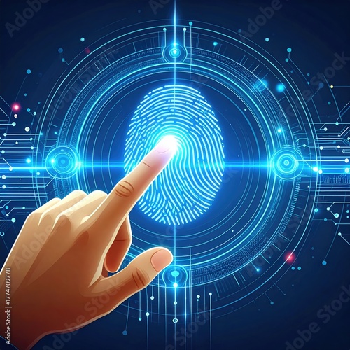 Futuristic Digital Fingerprint Scan for Biometric Security and Identity Verification.