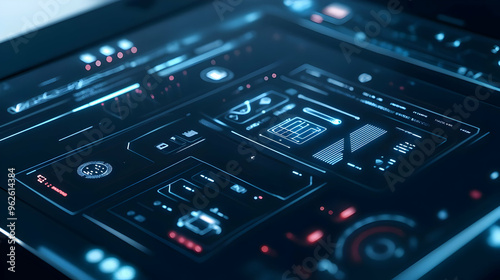 Futuristic Digital Interface with Blue and Red Lights 3D Illustration