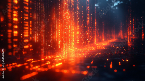 Futuristic digital landscape with glowing orange data streams, creating a dynamic and vibrant visual experience in technology.