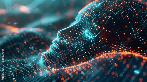 Futuristic Digital Landscape with Glowing Particle Network and Data Visualization