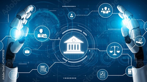 Futuristic digital law interface displaying justice scale, highlighting digital law, AI compliance, digital law systems, and digital law regulations for secure governance. Muxer