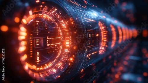 Futuristic Digital Tunnel: Glowing Orange and Blue Technology