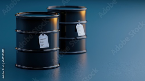 Futuristic Energy Market Analysis Concept with Transparent Oil Barrels Floating Price Tags in Modern Design -