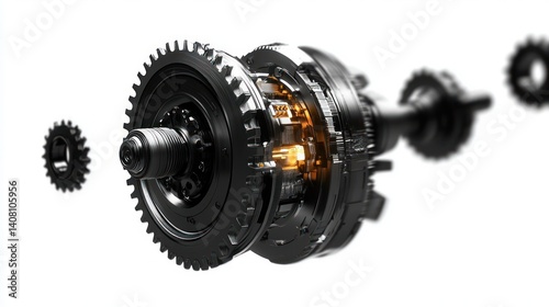 Futuristic Exploded View of Mechanical Jet Engine 3D Rendering with Dramatic Lighting and Depth