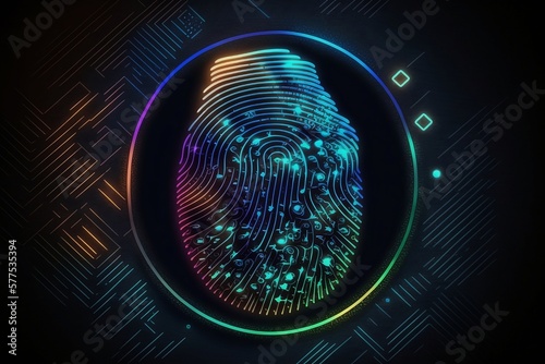 Futuristic fingerprint concept, biometrics, generative, AI