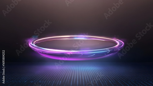 Futuristic Floating Disc with Neon Lights and Glowing Effects