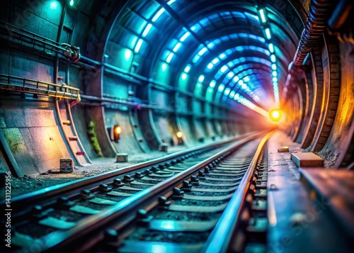 Futuristic Glowing Train Tunnel - Sci-Fi Tilt-Shift Stock Photo