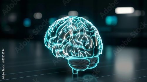 Futuristic graphic of a digital brain with neural pathways, symbolizing artificial intelligence and machine learning technologies. Illustration, Image, , Minimalism,