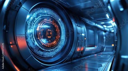 Futuristic, high-tech interior of a spaceship or advanced technology transport.