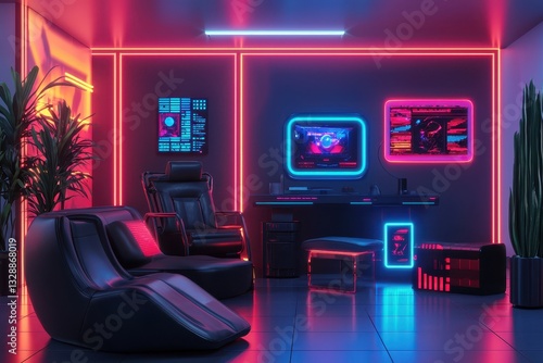 Futuristic Home Office with Neon Lighting and Stylish Furniture