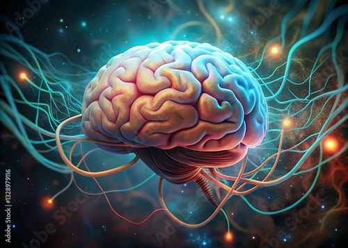 Futuristic Hype Cortex Concept with Digital Brain and Neural Network Connections