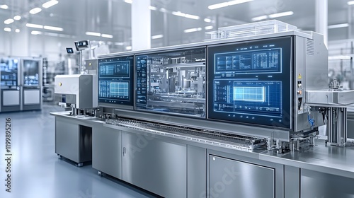 Futuristic Industrial Workspace with Holographic Control Panels and Advanced Automation