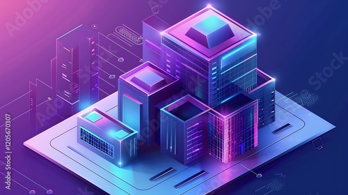 Futuristic isometric building envelope design with energy-efficient facades, modular panels, and sleek architectural lines