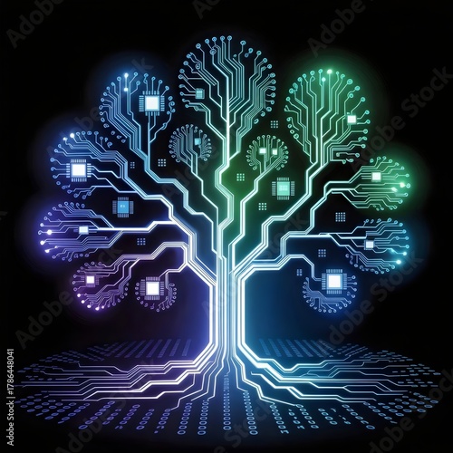 Futuristic luminous circuit tree of knowledge – Perfect for innovation, technology growth, or artificial intelligence representation.