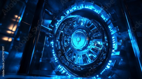 Futuristic Metal Circle with Blue Light Technology Concept Illustration